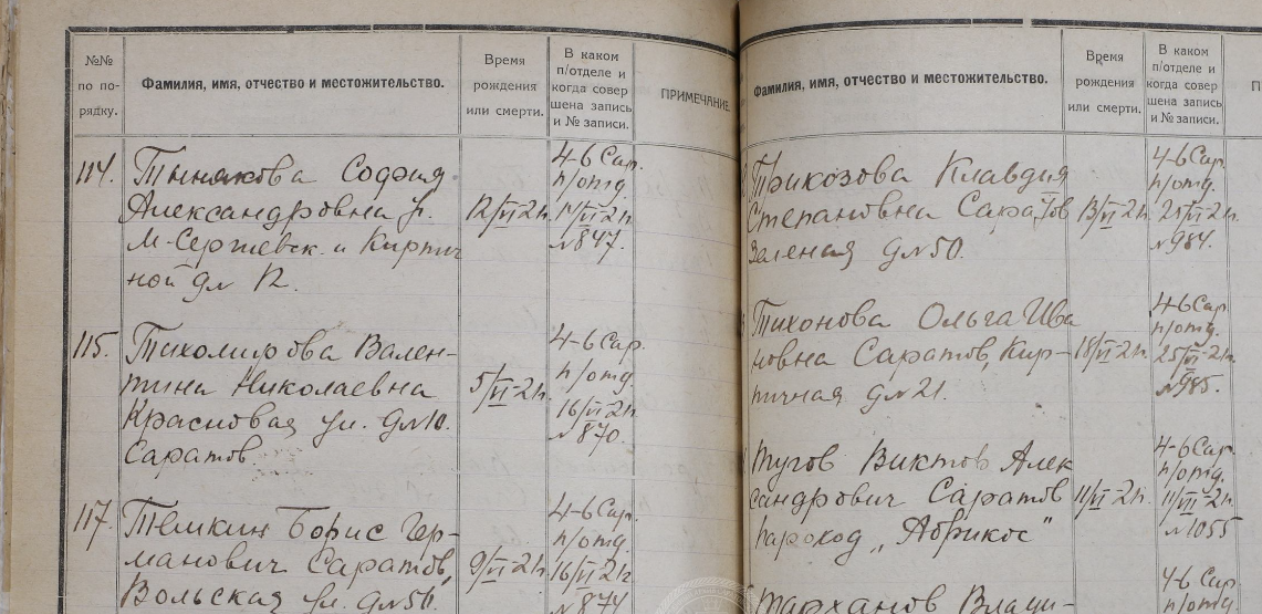 Алфавитный журнал регистрации записей о рождении по г. Саратову за 1920-1922 годы. ГАСО (Саратов) Ф.Р-3755 Оп.2. д.73, с.491