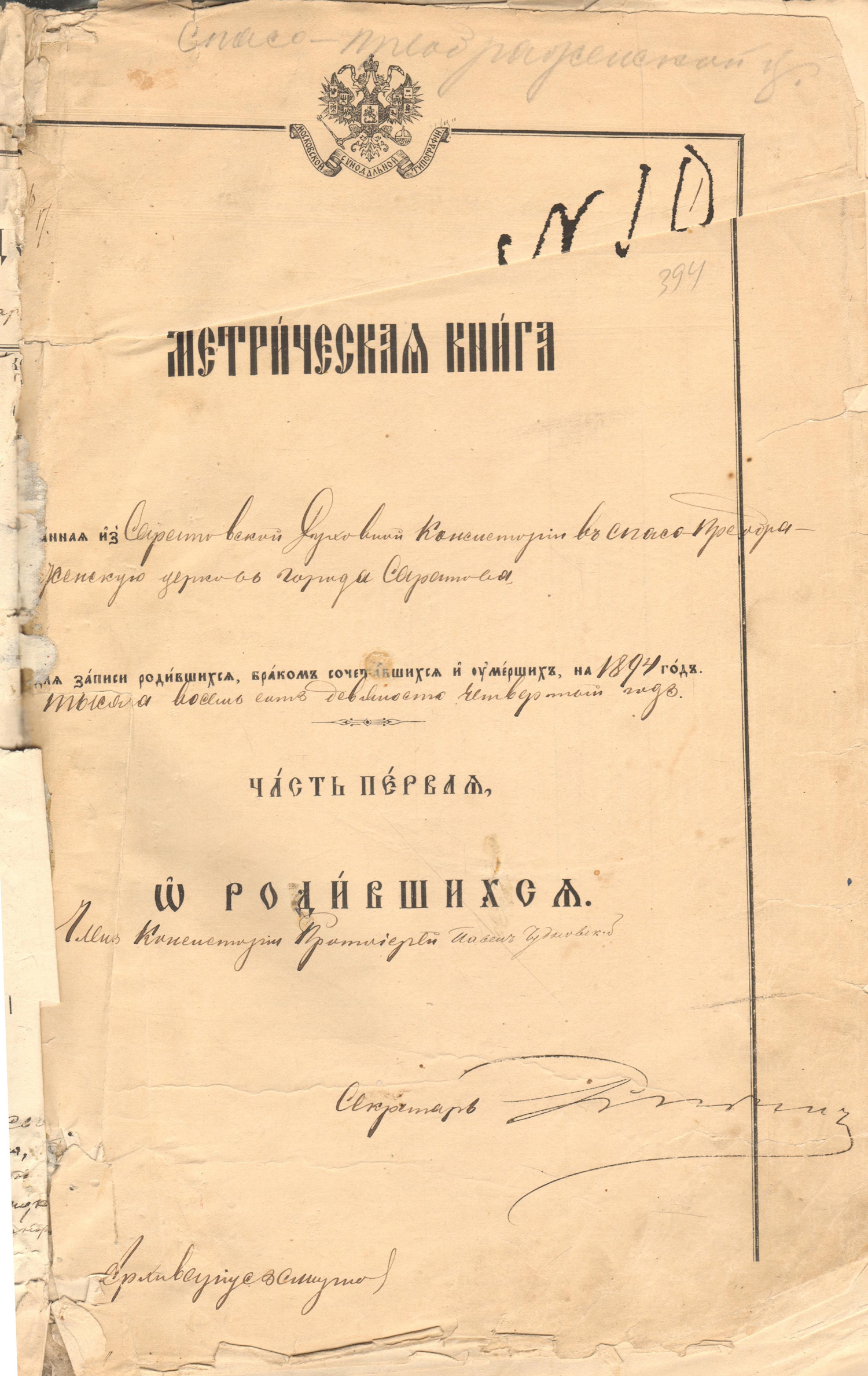 Актовая запись о венчании Тихомирова Николая и Твердовской Марии