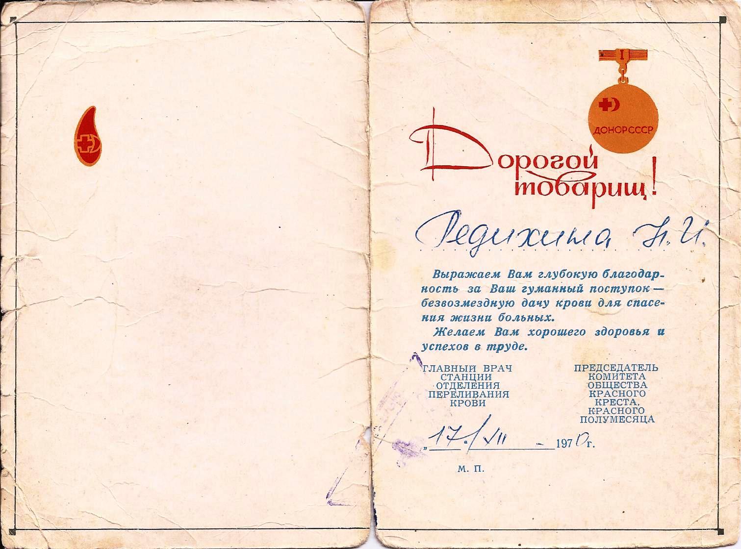 Профсоюзный билет Прониной (Редихиной) Нины Ивановны